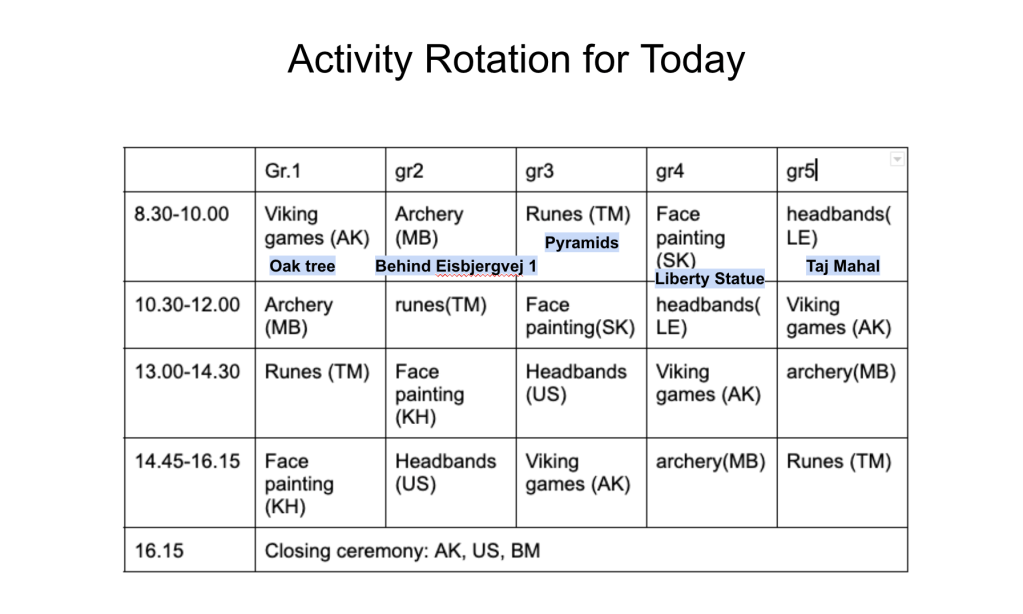 During the introduction, each group has received a plan for every time slot, e.g.
