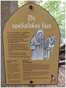 The photos you can see show signs placed in the green heart of the Middelaldercentre: the Magic Forest.. This “enchanted” walk introduces certain Scandinavian myths. We have decided to translate them.