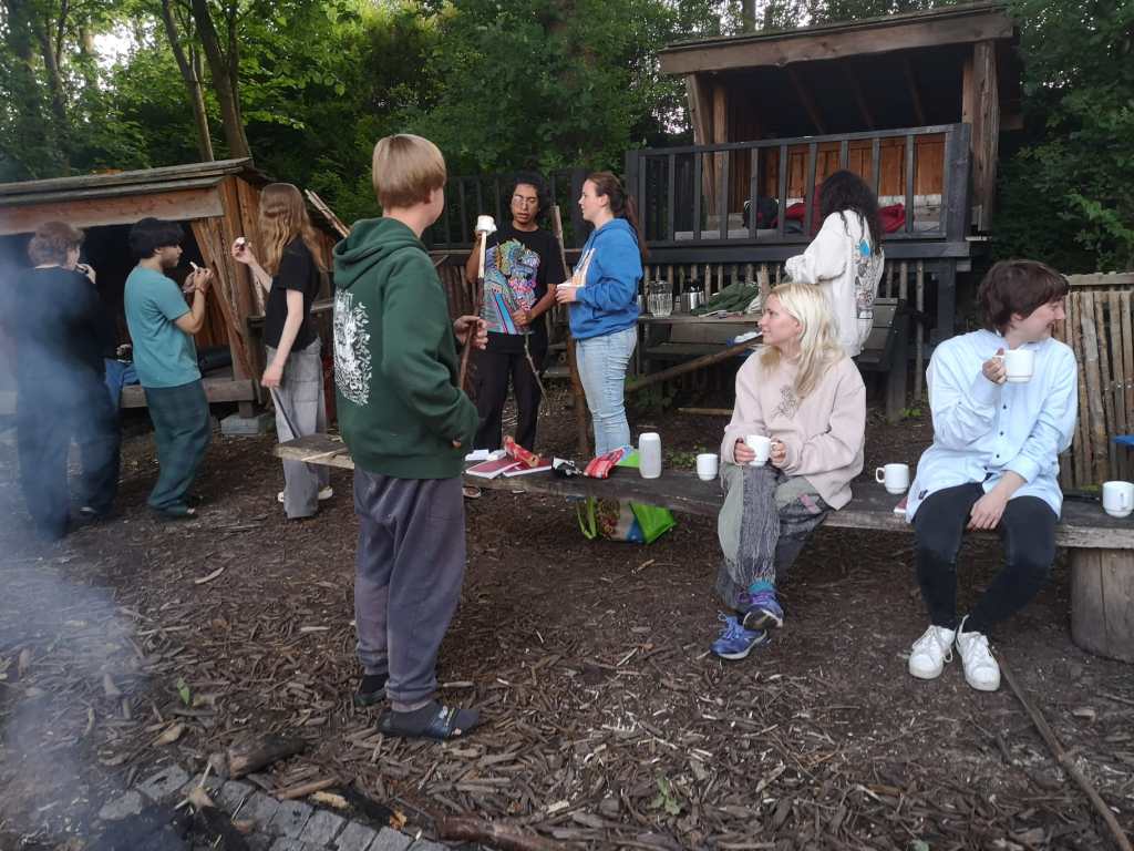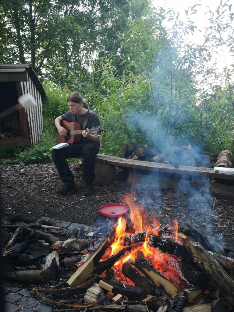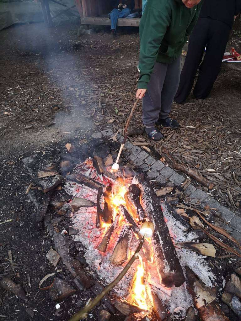 So we went down the city to buy enough marshmallows and some cookies, prepared a lot of tea, started a fire with two students and we brought the song books of the school with a guitar.