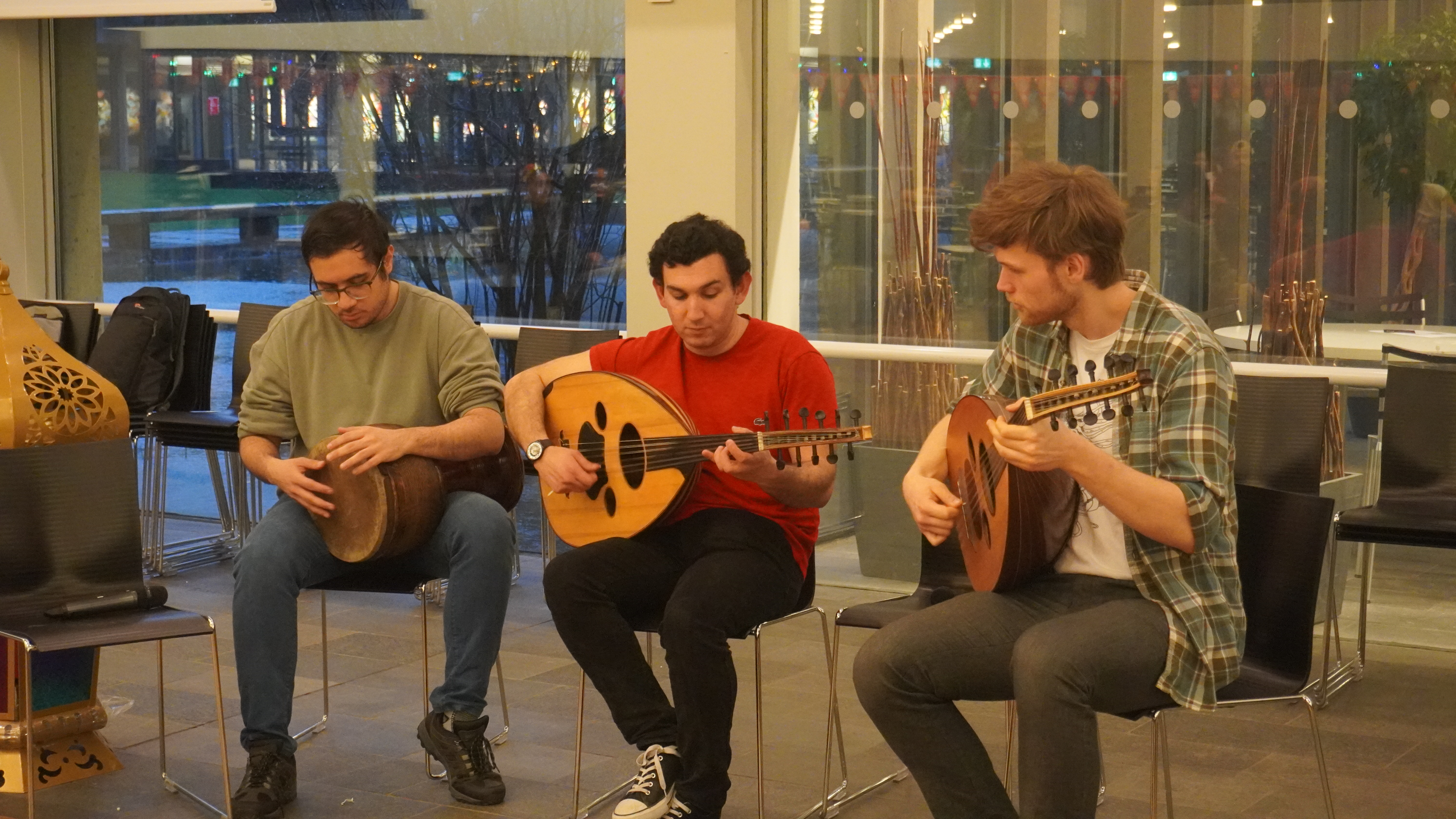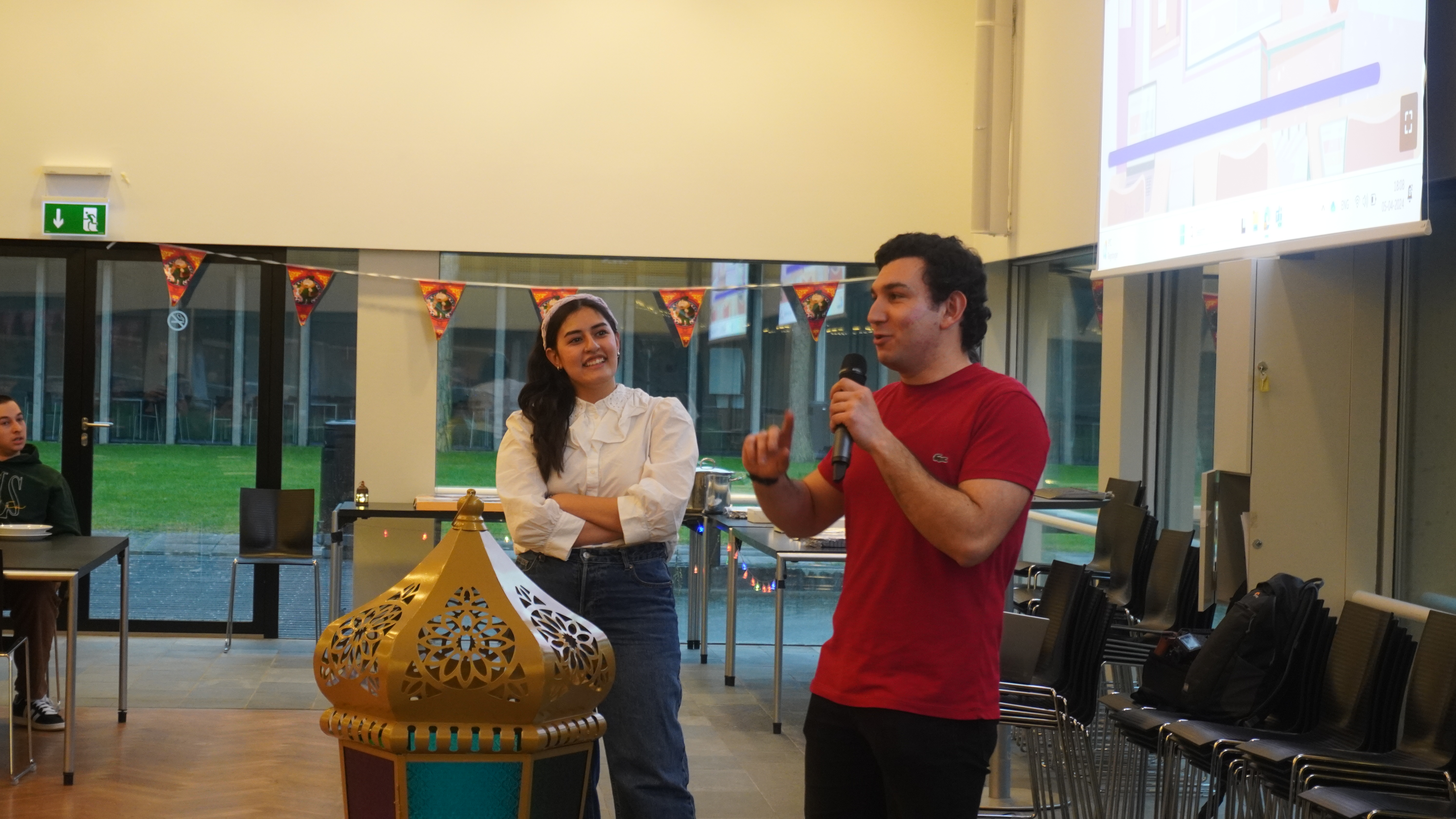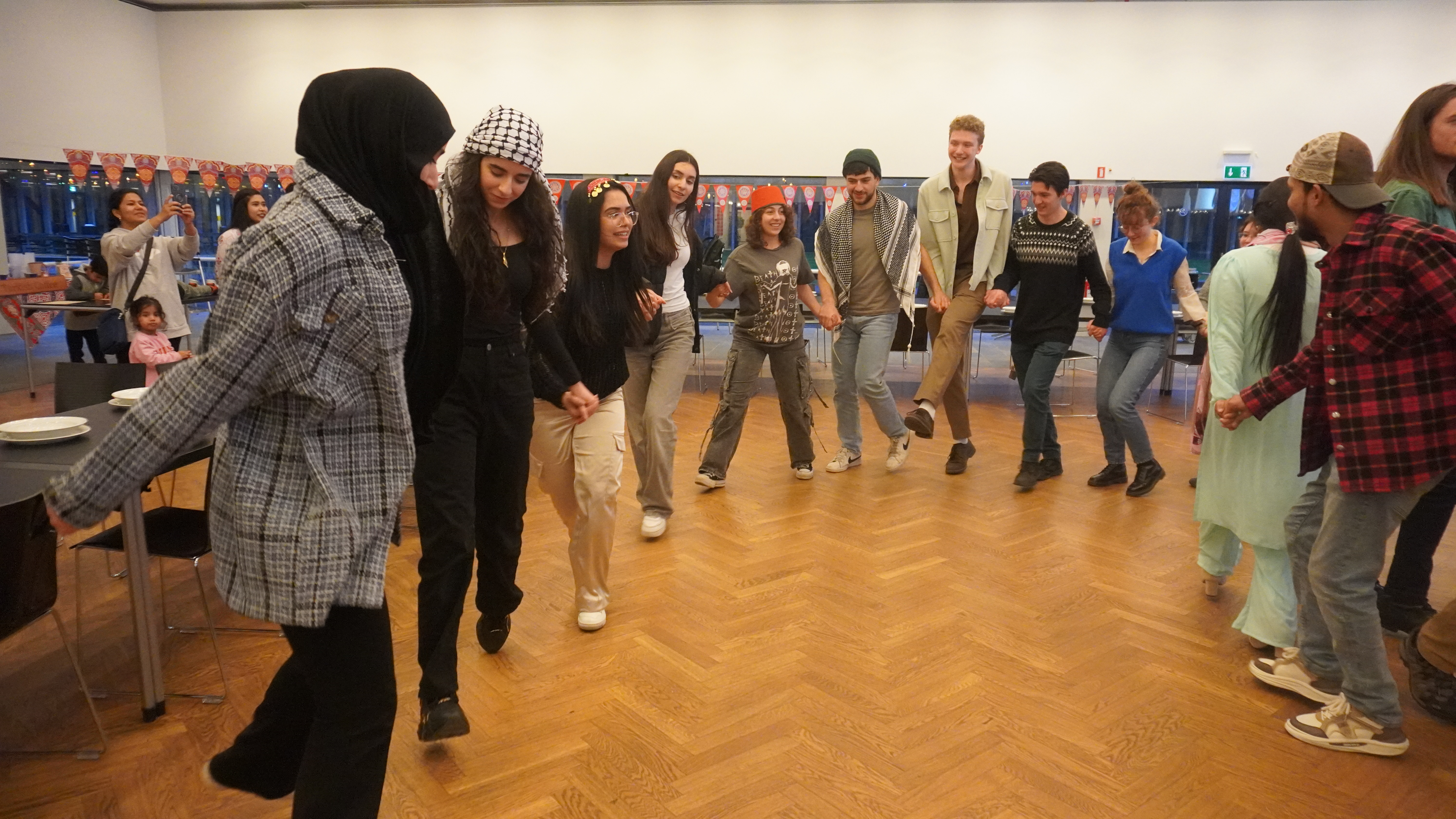 Our goal was to offer a variety of interesting and entertaining activities related to Ramadan, in addition to informative things too and open space for people who have questions about it. We created a playful Kahoot game to introduce internationals to the concept of Ramadan. We served a variety of dishes, including cacik, tahini, safayeh (little pies filled with meat and veggies), and dolma. Kunefe was served as a dessert, and Vimto and Amar el Deen as two popular Ramadan drinks. Together with Arabic and Persian calligraphy where visitors could learn how to write their names in Arabic and Persian script, we also have Turkish coffee and Arabic tea stations. The event also featured performances of traditional dances like the dabke and halay, as well as an oriental music display with Persian and Arabic instruments.