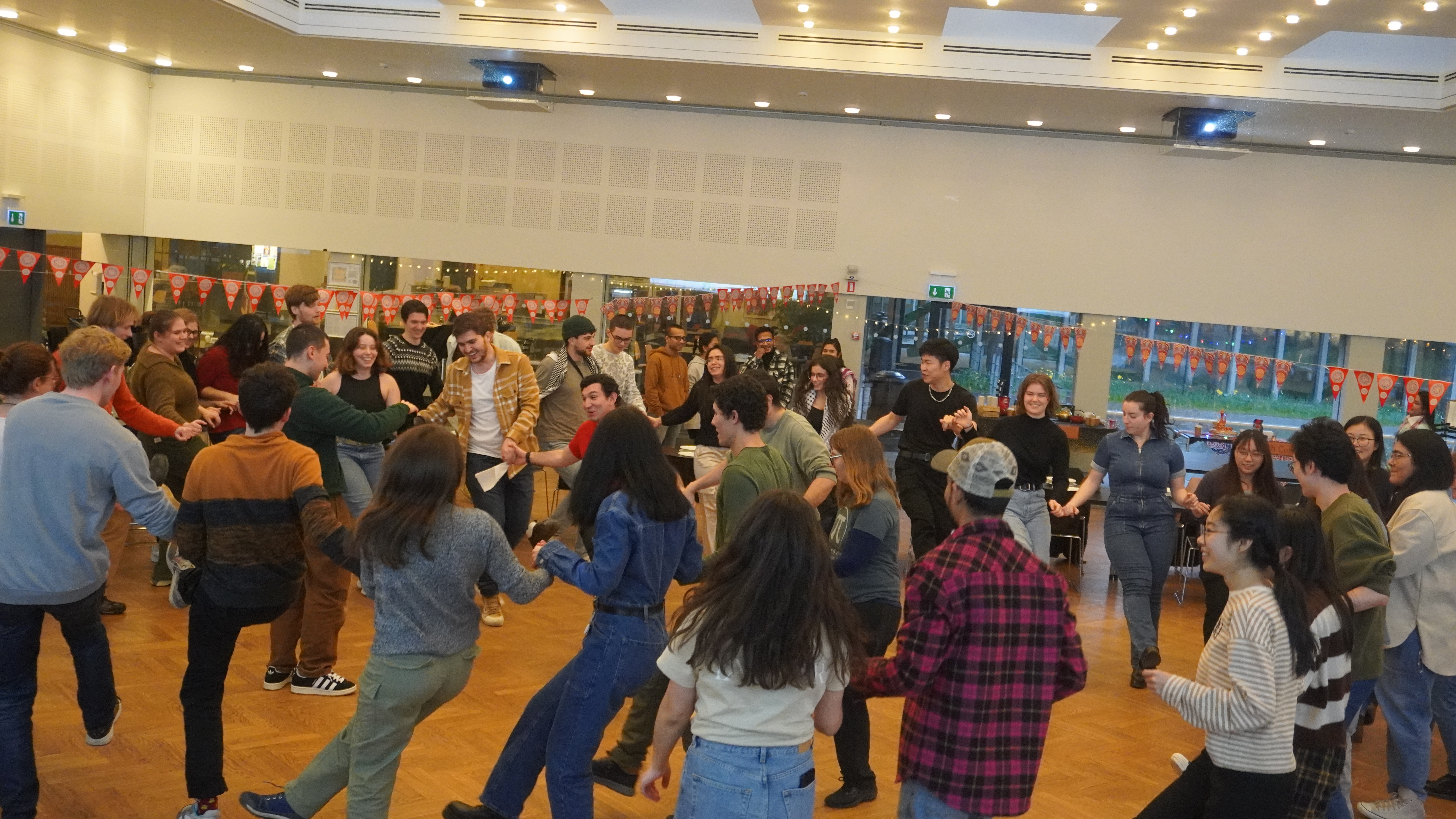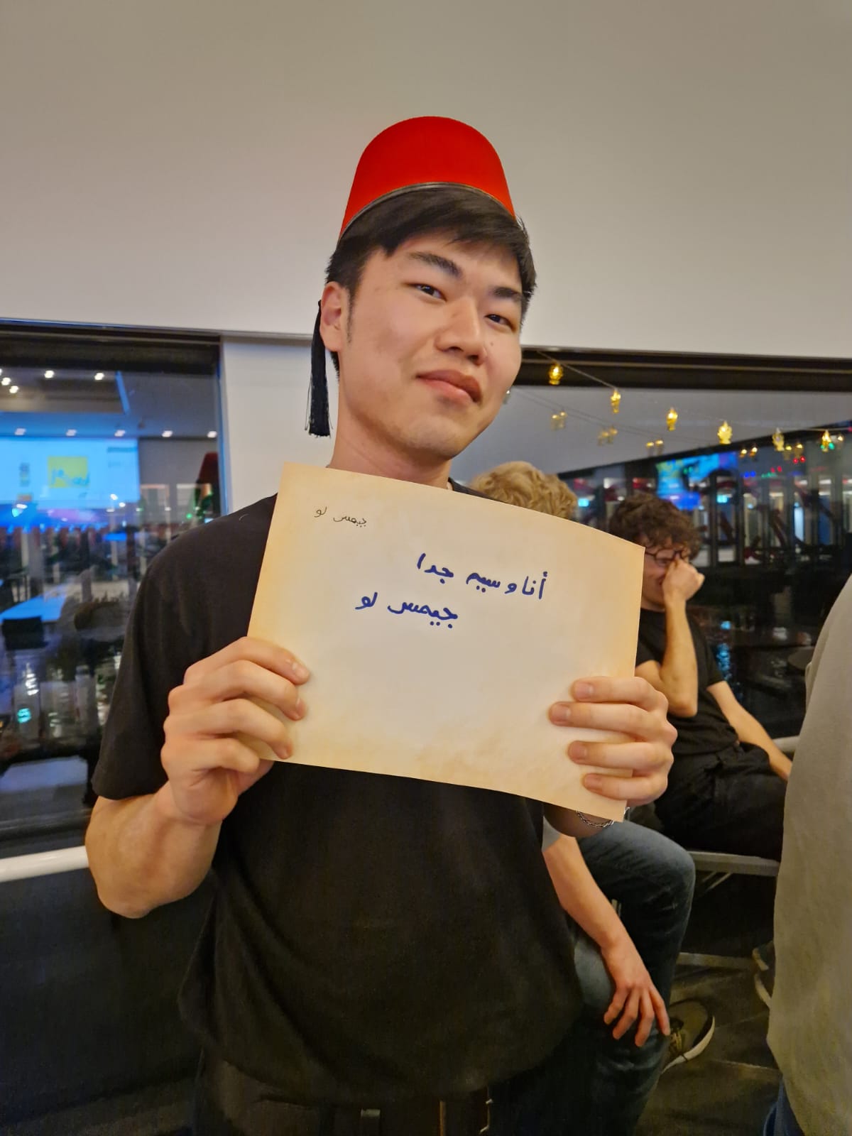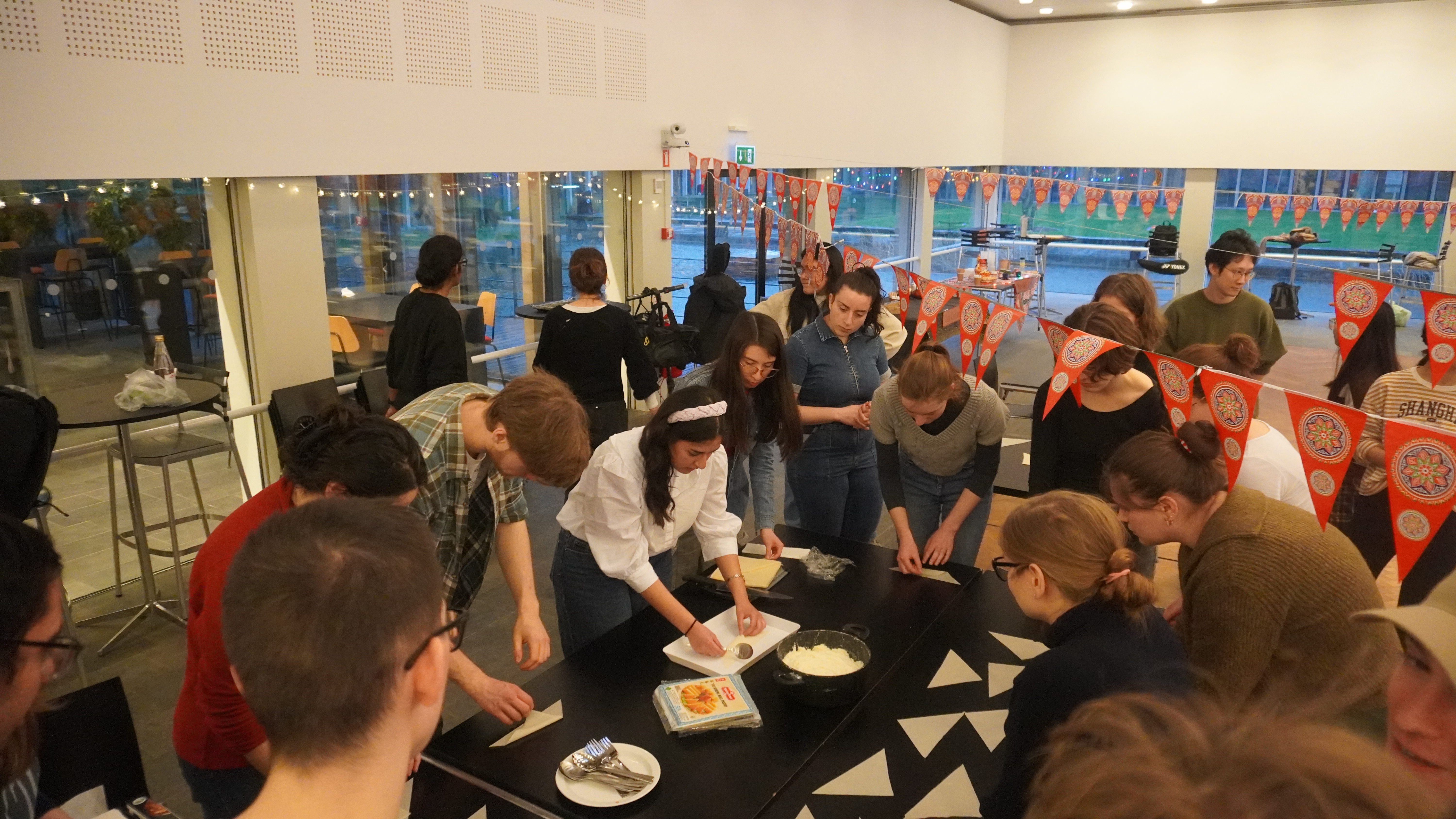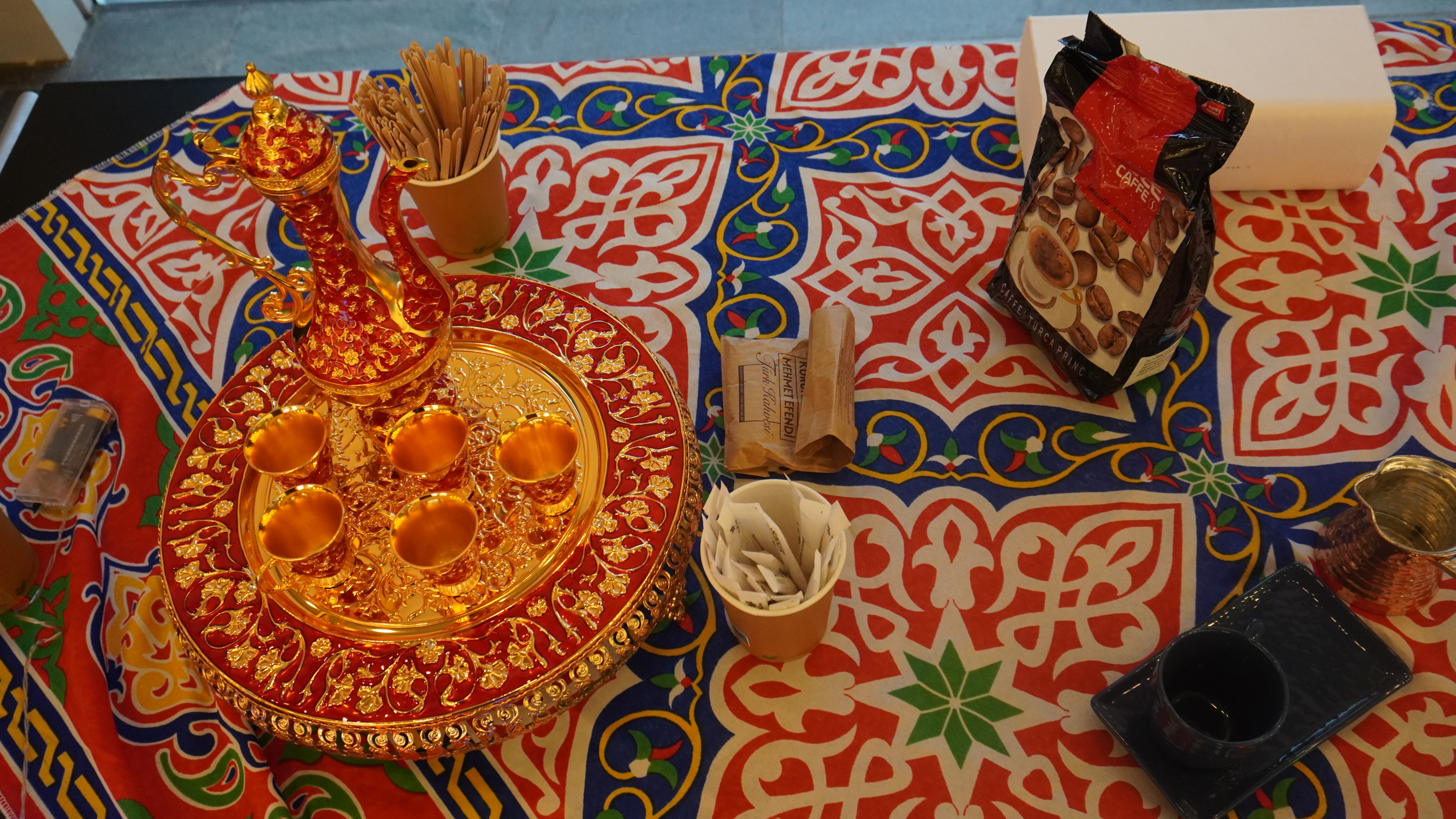 Our goal was to offer a variety of interesting and entertaining activities related to Ramadan, in addition to informative things too and open space for people who have questions about it. We created a playful Kahoot game to introduce internationals to the concept of Ramadan. We served a variety of dishes, including cacik, tahini, safayeh (little pies filled with meat and veggies), and dolma. Kunefe was served as a dessert, and Vimto and Amar el Deen as two popular Ramadan drinks. Together with Arabic and Persian calligraphy where visitors could learn how to write their names in Arabic and Persian script, we also have Turkish coffee and Arabic tea stations. The event also featured performances of traditional dances like the dabke and halay, as well as an oriental music display with Persian and Arabic instruments.