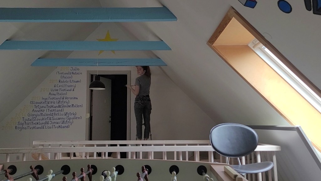 During my time at the project, I kept meeting former volunteers who visit the place and learned a lot about the history of the house and the volunteers. I was very surprised to learn that Husmandsstedet in Aarlev has a long tradition and multiple volunteers from all over Europe have been working there every year since 1999. I thought it was a great pity that you don’t see these traces of many years of cultural cooperation. I really wanted to show the children and everyone who visits the house what kind of place they are in. Unfortunately, during my research I also found out that over the years, due to changing management and the destruction of documents in accordance with data protection laws, many names of volunteers who used to work in Husmand have been lost.