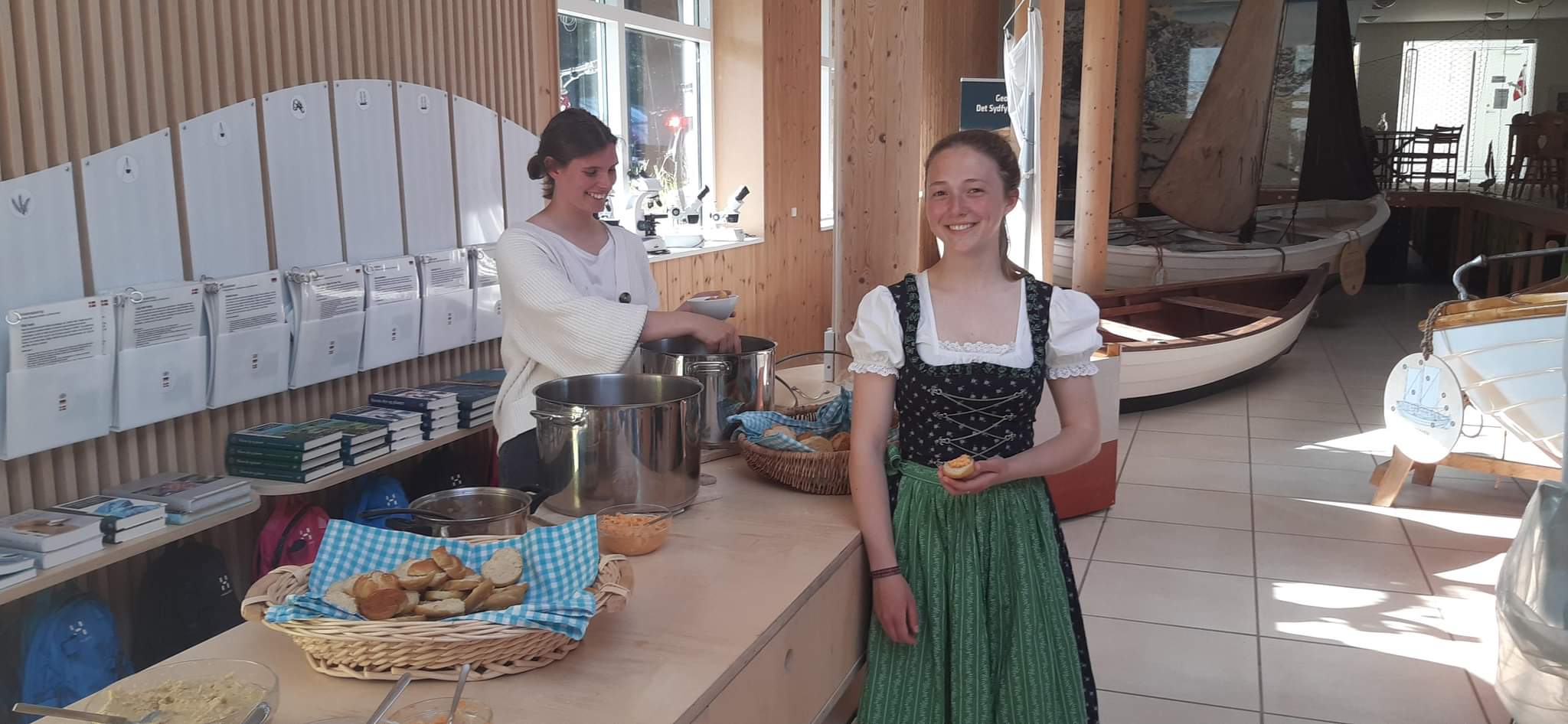 On the winter, our main job was renovating. . We painted a lot ( rooms,one of the boat called: Selma). We cleaned a lot, took care of the tents and take the boats back from the water. After that, we started to cleaning,sanding,painting them. We did not have many visiters, so it was quiet, expect when we had party in the Smakkecenter. In autumn and in the vinter when we had party (f.x.Light show party ) we helped in the preperation, and it was inetersting to see how these parties become alive.