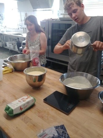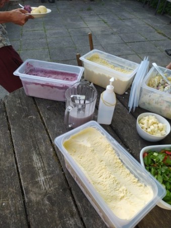 In the end of our volunteering it was pretty warm weather, we decided to make our own ice cream. The recipe was made with eggs (the hens are raised not far from the school), cream (we are still using the milk from our farm) and sugar. And after, we added different flavours : strawberry and white chocolate, vanilla and white chocolate and blueberry yogurt.
