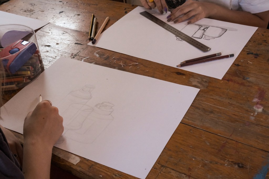 I begin by introducing the course and the principles of drawing, then I talk about drawing tools, perspective… I keep talking and drawing until I feel like I exhausted all I know about the subject. I take a look at the watch. My lesson lasted around ten minutes.