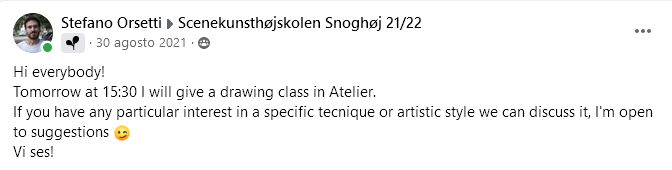 For the next classes I tried to be more structured and proposed different drawing related topics, such as human figure drawing, composition, quick sketching techniques. Some students joined along the way, some other left. When this happens it hurts a bit, you can’t help but start questioning yourself, am I good enough for this? But I guess that’s just how things goes. What’s sure is that it was funny and rewarding to share my knowledge and passion about something I like, and seeing the slightest improvement in my student’s practice. It was also exciting noticing the differences of attitudes among my students: some more analytics and structured, some more extravagant and creative. I think the role of a good teacher should be to respect those peculiarities and let them flourish.