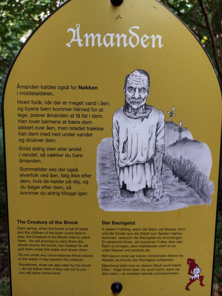 Ogni primavera quando il ruscello è in piena, i bambini della città vengono qui a giocare e l’åmand (o nøkken, come veniva chiamato nel medioevo) tenta di catturarli. La creatura promette ai bambini di portarli all’asciutto e al sicuro sull’altra sponda del ruscello, invece li trascina con sé sott’acqua e li affoga.